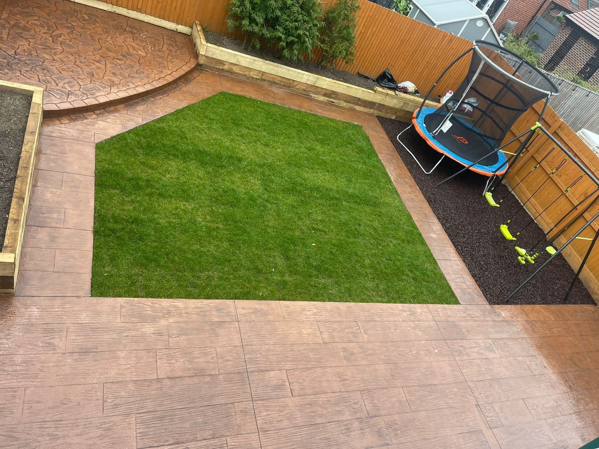 There are so many textures, colours, and stamped concrete patterns to choose from it makes choosing your patio a joy. You can choose coloured concrete, a shake on colour hardener, concrete stain, or a concrete dye. These can also be used together to create many colour variations.